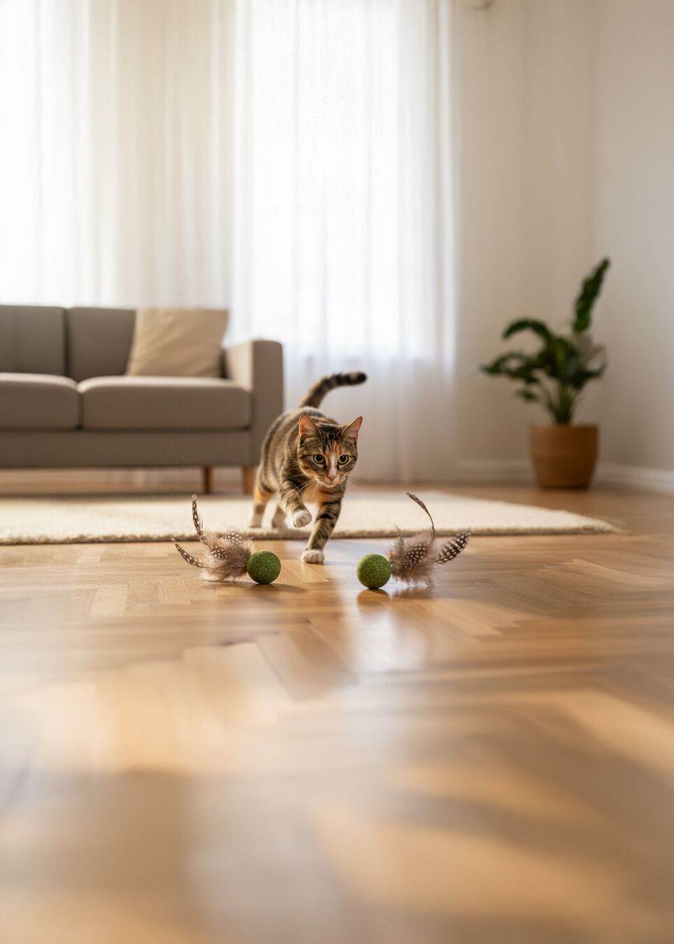Treat your cat to a playful delight with this green Katti catnip ball! The feathers add extra fun and make it irresistible. Perfect for keeping your cat active and happy. Let the playtime begin!