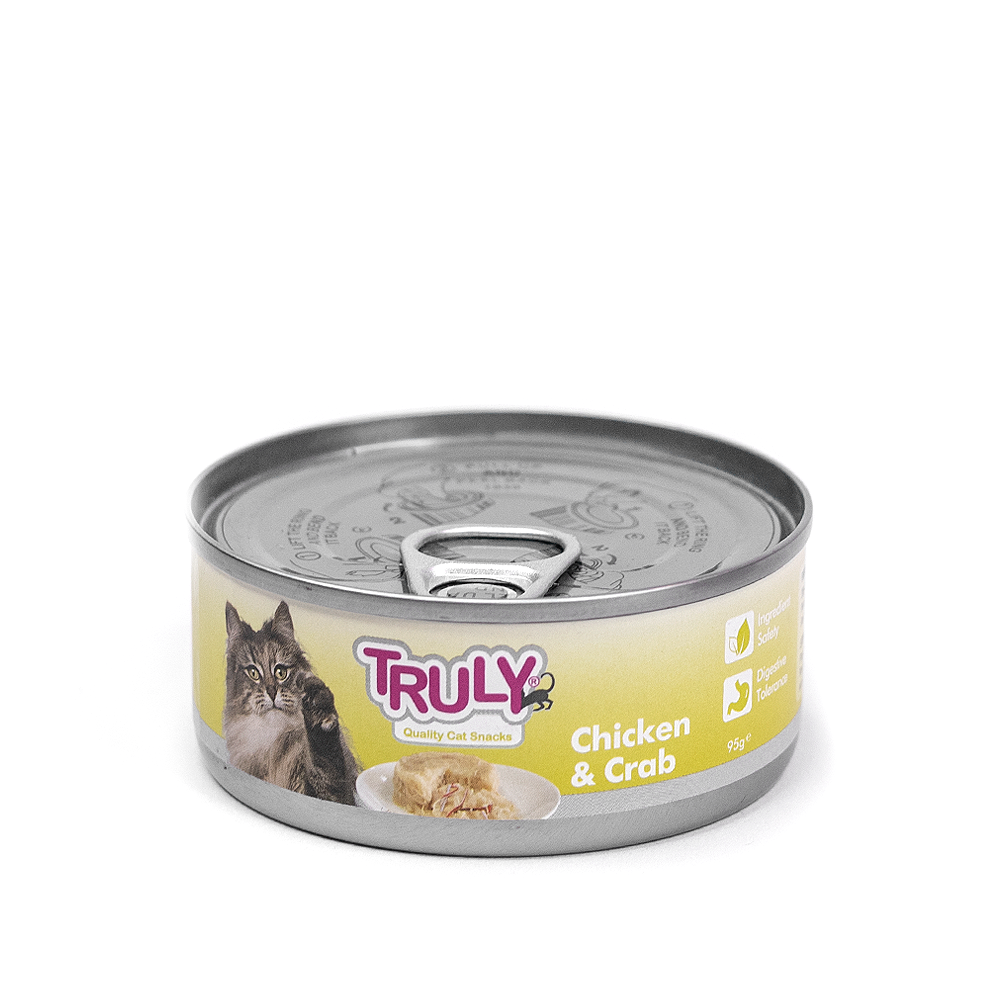 Ingredienser: Kylling, krabbe, stivelse, carrageenan, salt, taurin, vitaminer (A, B2, B3, B5, D3, E), calciumcarbonat.Analyse: Protein 9%, fedt 0,1%, fibre 0,5%, aske 1,5%, vand 88%