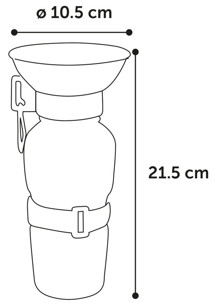 Do you love going on adventures with your loyal four-legged friend? Then this handy water bottle is a must-have! With a capacity of 410 ml, you'll always have enough water on hand for your pup. The included drinking bowl makes it super easy for your dog to drink. Perfect for long walks, car rides, and travels with your furry companion. Make sure you're always prepared and bring this handy water bottle along for the ride!