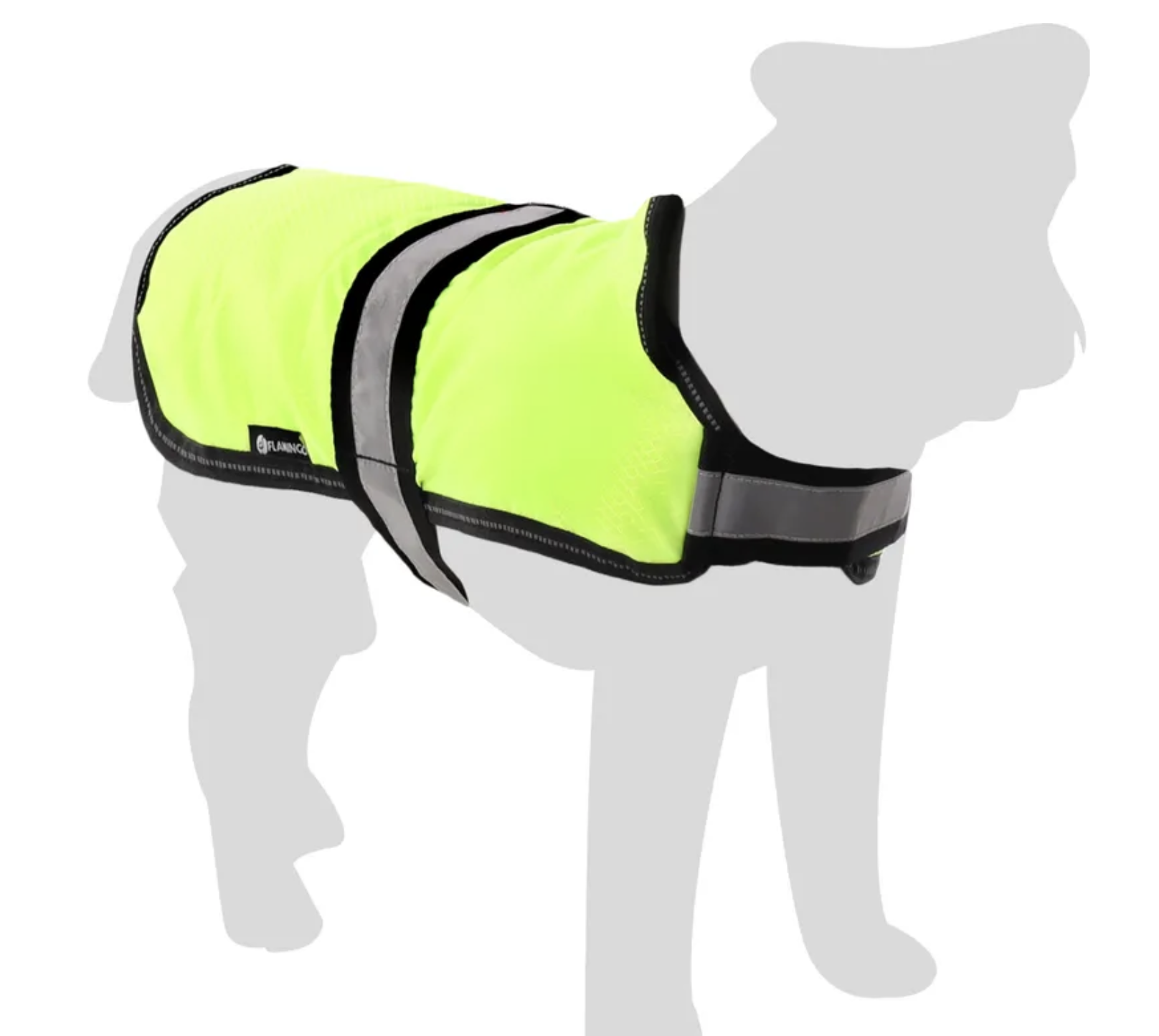 The Eisbär Fluo Yellow Winter Coat is perfect for your furry friend during the chilly days. It's made of breathable polyester with a soft filling and can be washed at 30°C. The coat features handy reflective straps and Velcro fastenings. Thanks to its special coating, it's water-resistant and windproof. It even has elastic bands for the hind legs and a leash opening. Truly a must-have for your furry companion!