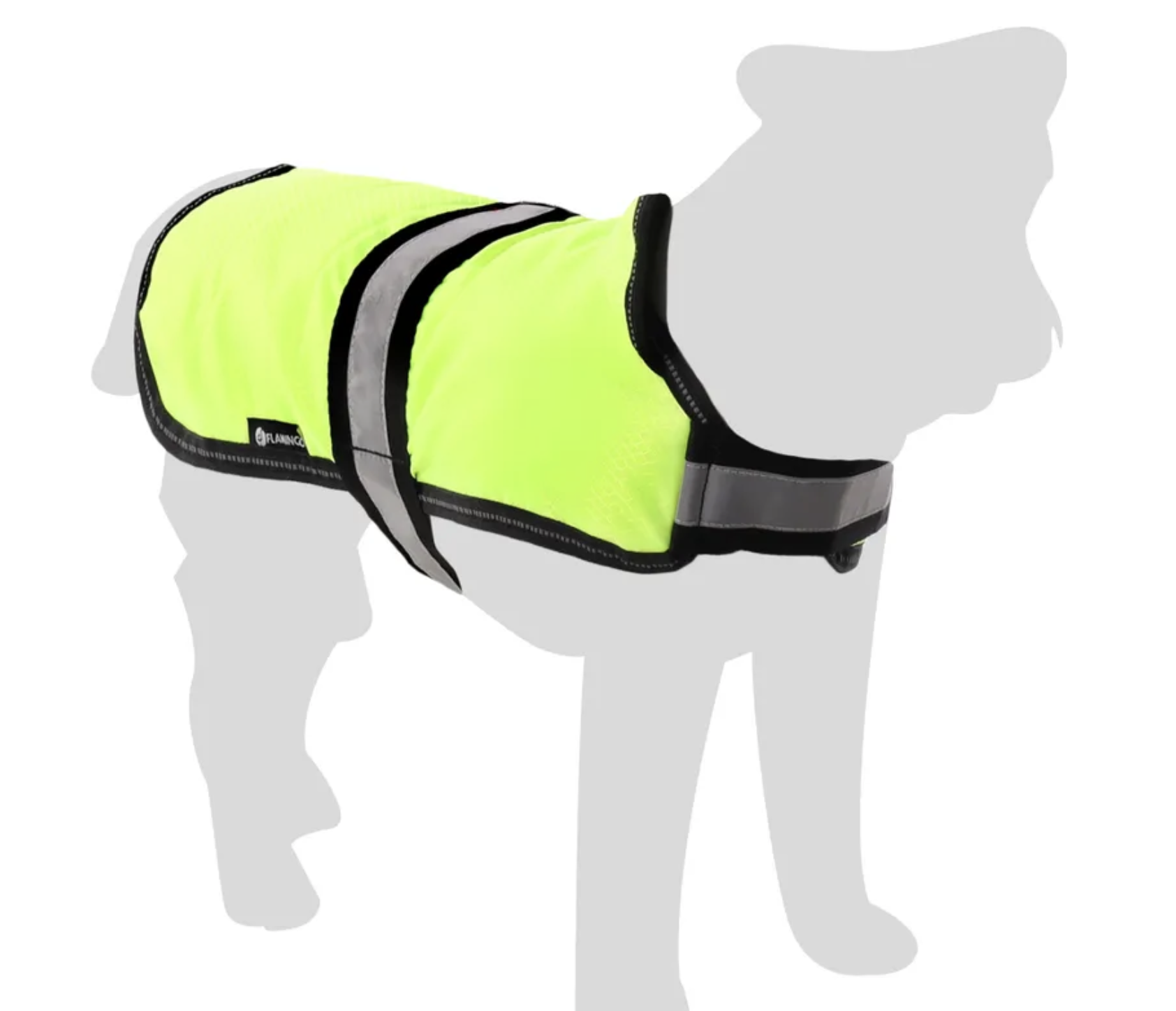 The Eisbär Fluo Yellow Winter Coat is perfect for your furry friend during the chilly days. It's made of breathable polyester with a soft filling and can be washed at 30°C. The coat features handy reflective straps and Velcro fastenings. Thanks to its special coating, it's water-resistant and windproof. It even has elastic bands for the hind legs and a leash opening. Truly a must-have for your furry companion!