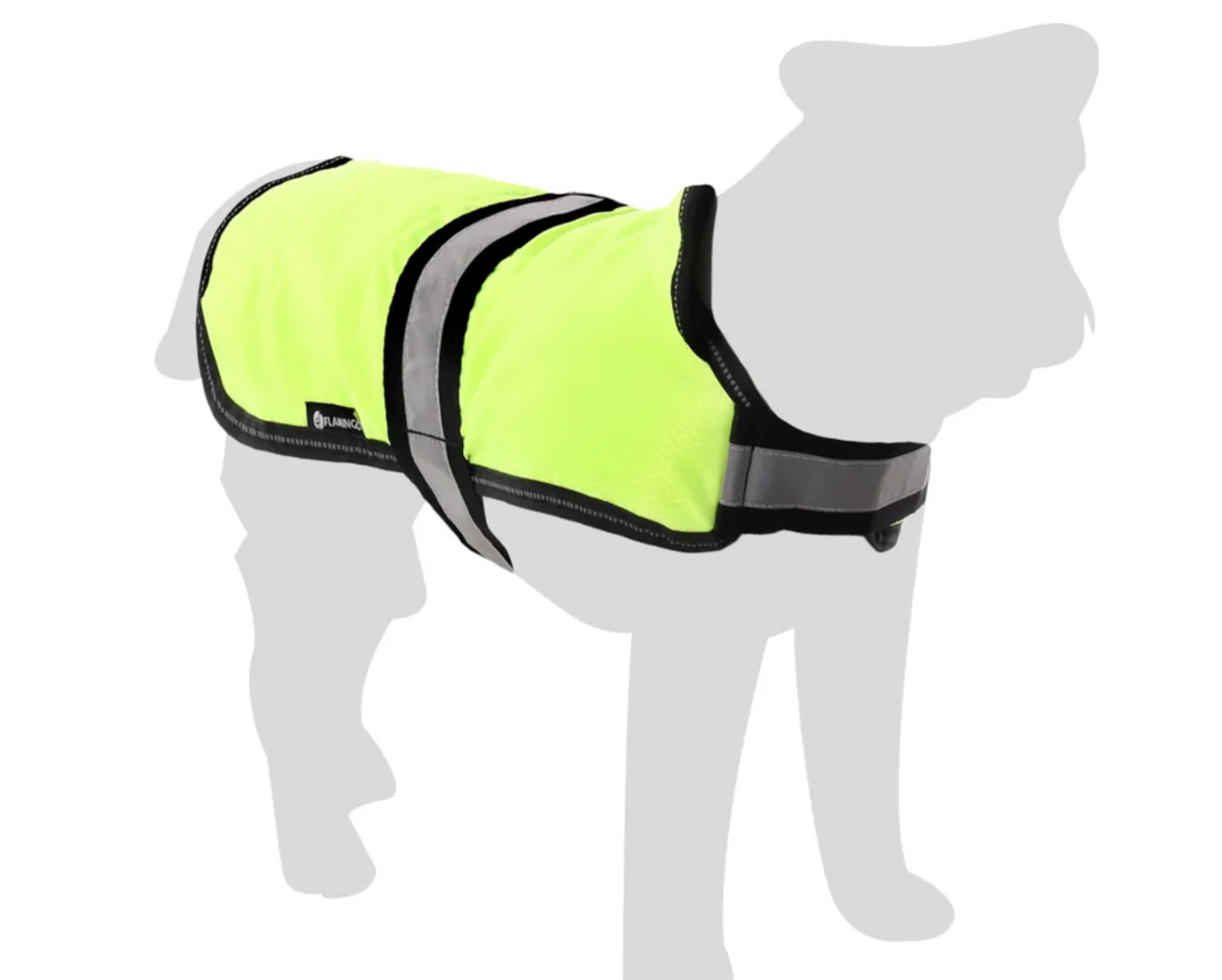 The Eisbär Fluo Yellow Winter Coat is perfect for your furry friend during the chilly days. It's made of breathable polyester with a soft filling and can be washed at 30°C. The coat features handy reflective straps and Velcro fastenings. Thanks to its special coating, it's water-resistant and windproof. It even has elastic bands for the hind legs and a leash opening. Truly a must-have for your furry companion!