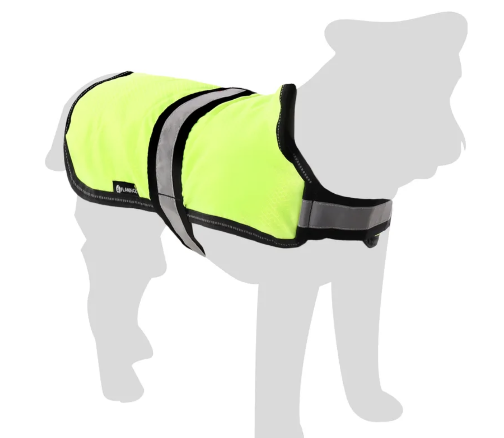 The Eisbär Fluo Yellow Winter Coat is perfect for your furry friend during the chilly days. It's made of breathable polyester with a soft filling and can be washed at 30°C. The coat features handy reflective straps and Velcro fastenings. Thanks to its special coating, it's water-resistant and windproof. It even has elastic bands for the hind legs and a leash opening. Truly a must-have for your furry companion!