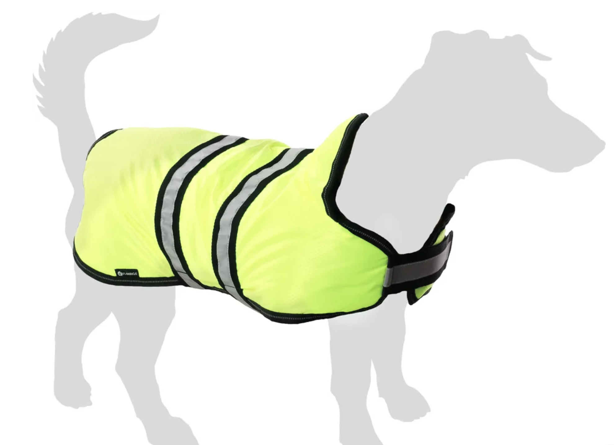 The Eisbär Fluo Yellow Winter Coat is perfect for your furry friend during the chilly days. It's made of breathable polyester with a soft filling and can be washed at 30°C. The coat features handy reflective straps and Velcro fastenings. Thanks to its special coating, it's water-resistant and windproof. It even has elastic bands for the hind legs and a leash opening. Truly a must-have for your furry companion!