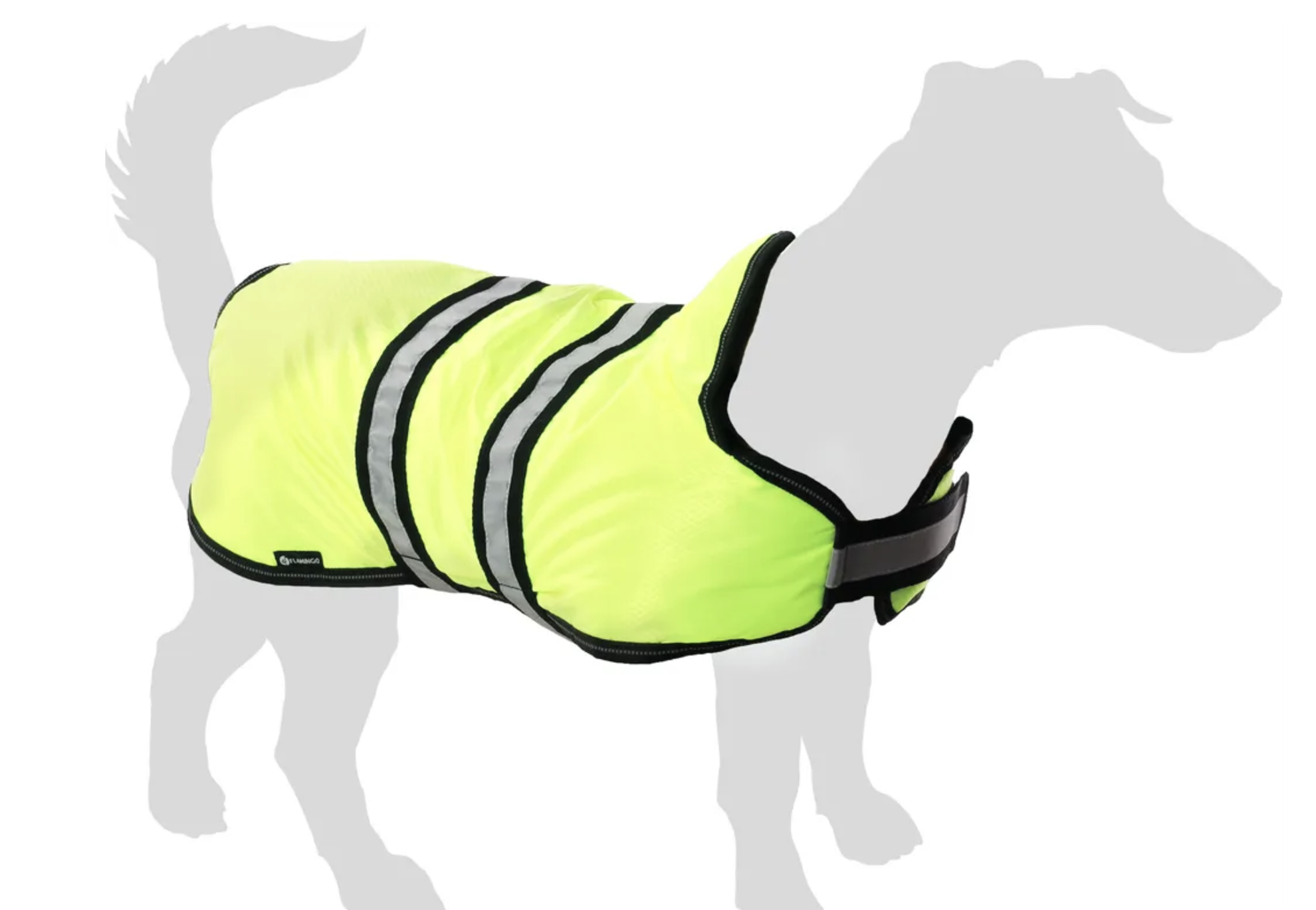 The Eisbär Fluo Yellow Winter Coat is perfect for your furry friend during the chilly days. It's made of breathable polyester with a soft filling and can be washed at 30°C. The coat features handy reflective straps and Velcro fastenings. Thanks to its special coating, it's water-resistant and windproof. It even has elastic bands for the hind legs and a leash opening. Truly a must-have for your furry companion!
