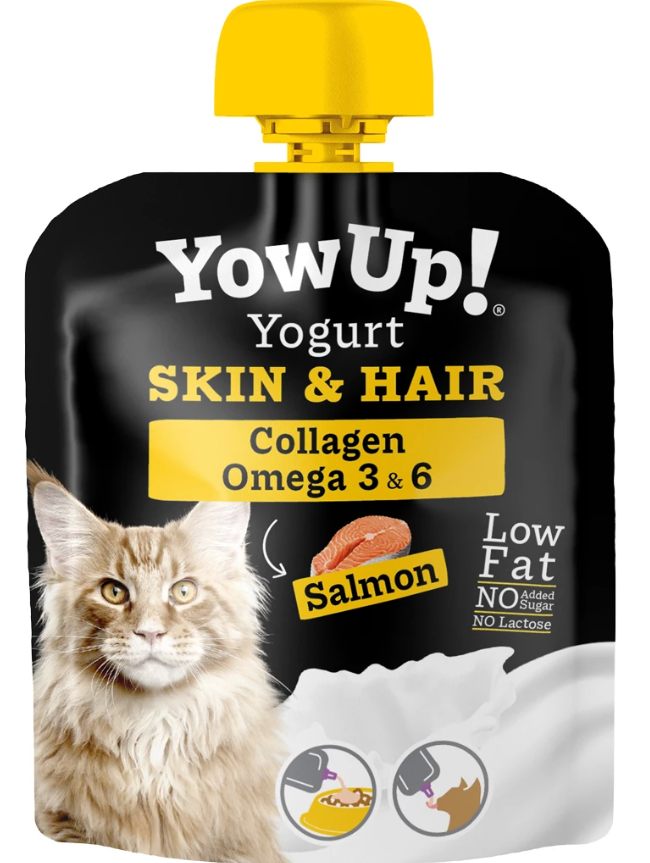 YowUp! er en naturlig yoghurt med en skræddersyet formel til katte. Formlen indeholder ingen tilsat sukker, er laktosefri og indeholder 0 % fedt.